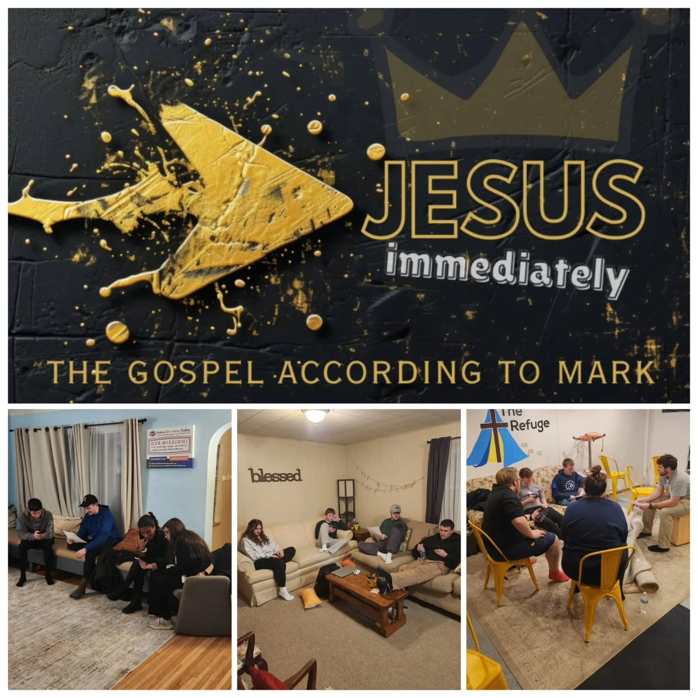 Join us Wednesdays 7:30pm for JESUS IMMEDIATELY! A study of the gospel according to Mark. There is a free dinner provided weekly at 6:30pm.