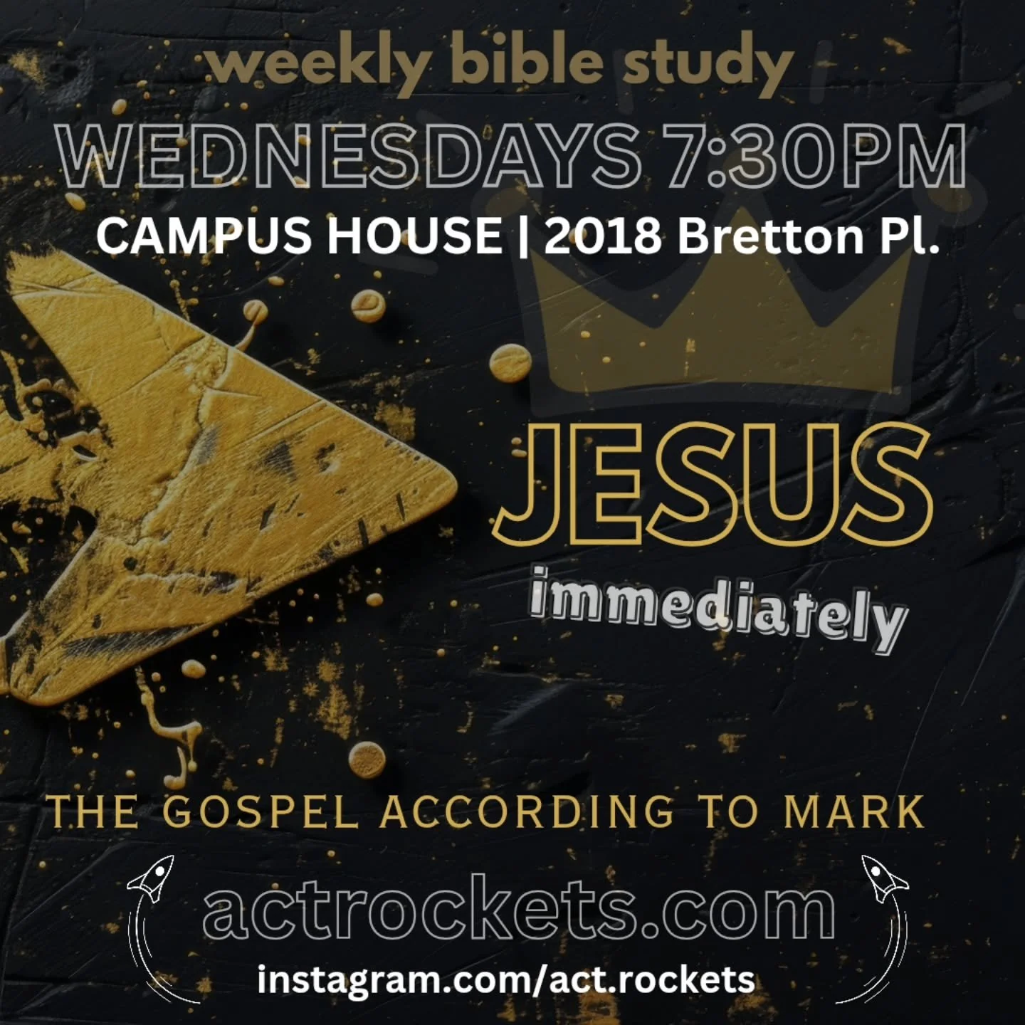 Join us Wednesdays 7:30pm for JESUS IMMEDIATELY! A study of the gospel according to Mark. There is a free dinner provided weekly at 6:30pm.